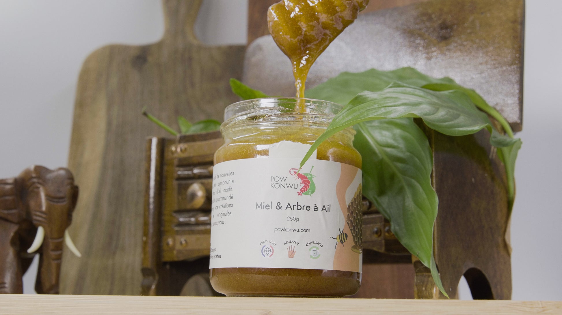Le Miel à l’Arbre à Ail, une rencontre inédite entre la rondeur d’un miel doré et la puissance aromatique de l’Arbre à Ail, ce trésor des forêts africaines.